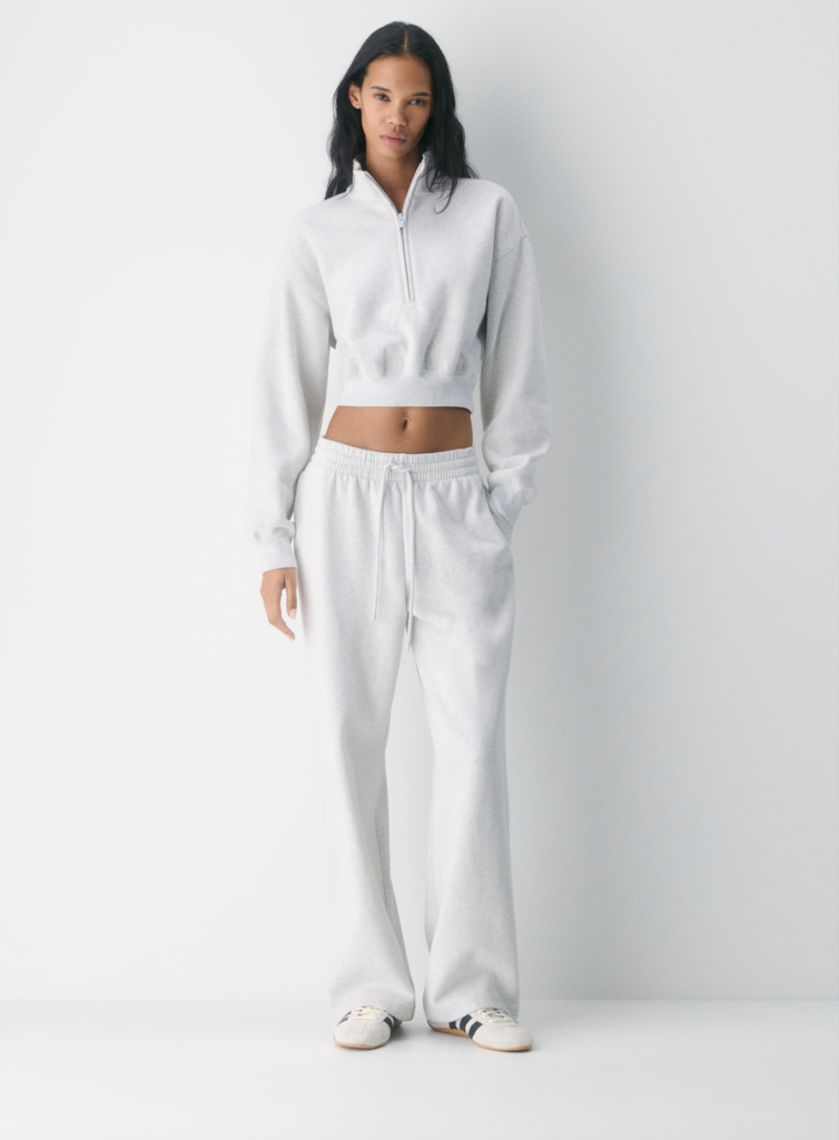 Sweatfleece Boyfriend Wide Sweatpants in Heather Cloud White by Aritzia